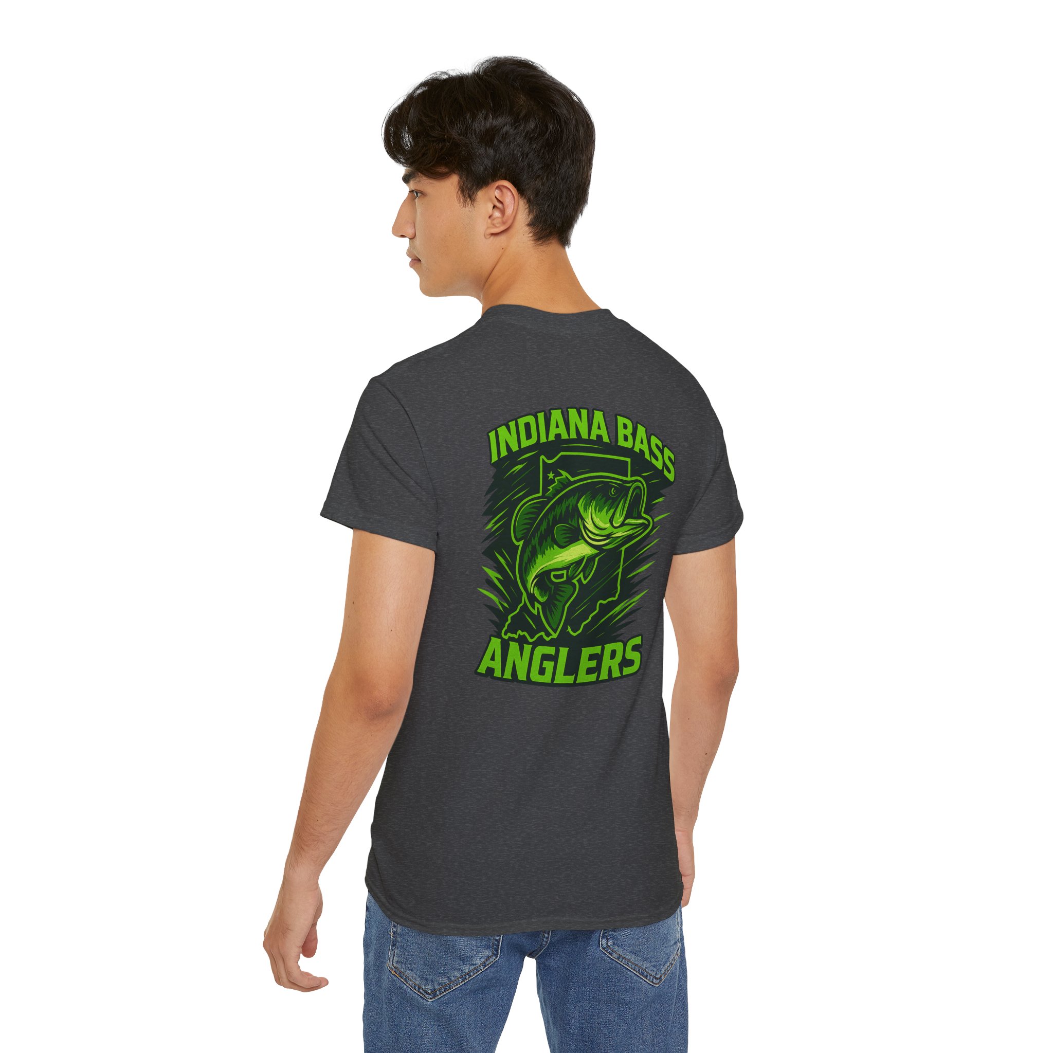 A soft, sturdy tee made to feel lived-in from the first wear. This cotton crew neck carries a bold, athletic bass graphic on the back and a small matching crest on the chest — the kind of shirt anglers reach for when they want to show club pride without fuss. The medium-weight fabric gives a vintage hand and holds up to repeated trips to the lake, boat mornings, and post-run errands. It sits roomy across the shoulders and chest so you can layer a hood or zip over it on cooler mornings. Simple, rugged, and honest: a shirt that blends into the rhythm of casting lines, swapping lures, and trading fish stories.