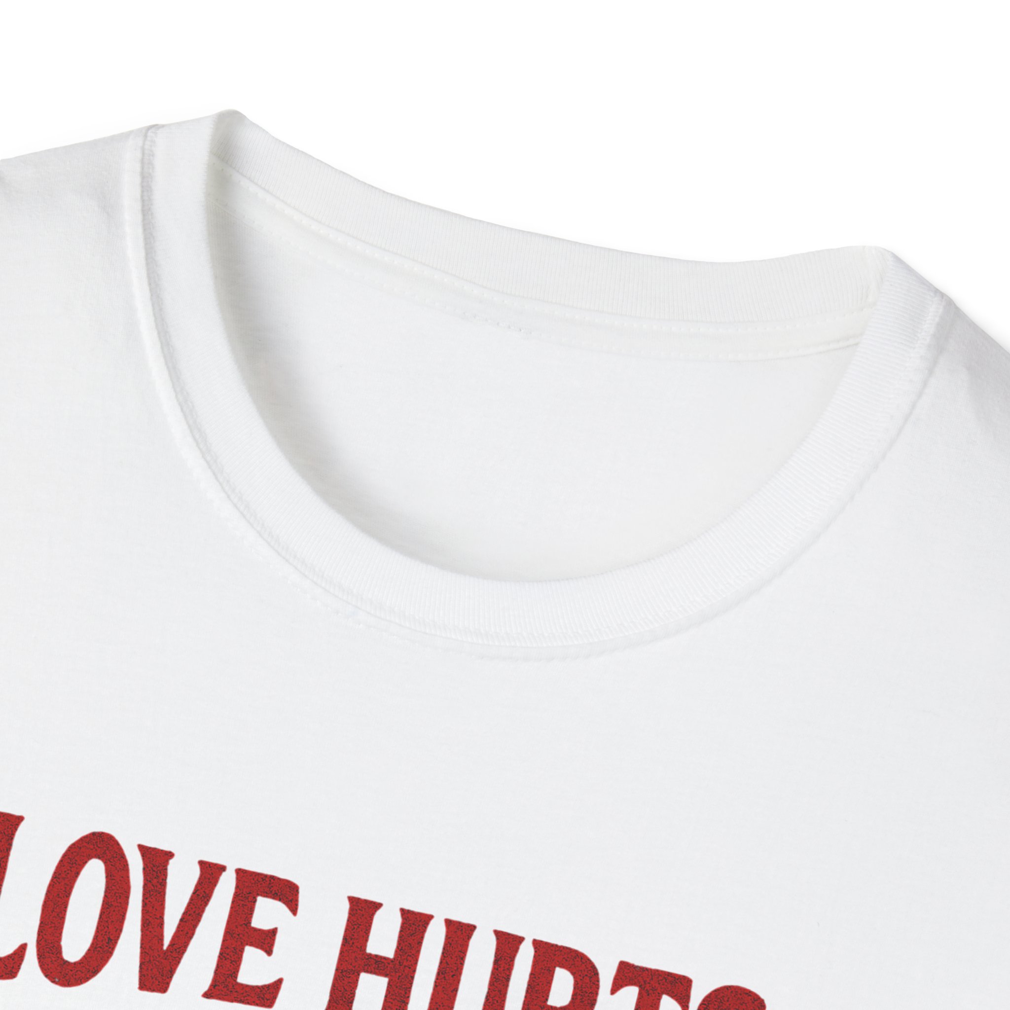 Wear a little dark humor with soft, everyday comfort. This lightweight crew tee shows a cherub-like skeleton clutching a broken heart beneath the wry headline “LOVE HURTS” and the smaller line “SOMETIMES LITERALLY.” The illustration balances vintage tattoo vibes with a playful grimace — a wink for anyone who appreciates sarcastic romance and offbeat style. It’s light on weight, breathable, and smooth to the touch, so the design reads clearly while you go about your day. Throw it on for late-night bar runs, vinyl hunting, or those messy break-up recovery walks when you want to say more with a smile that’s a little deadpan.
